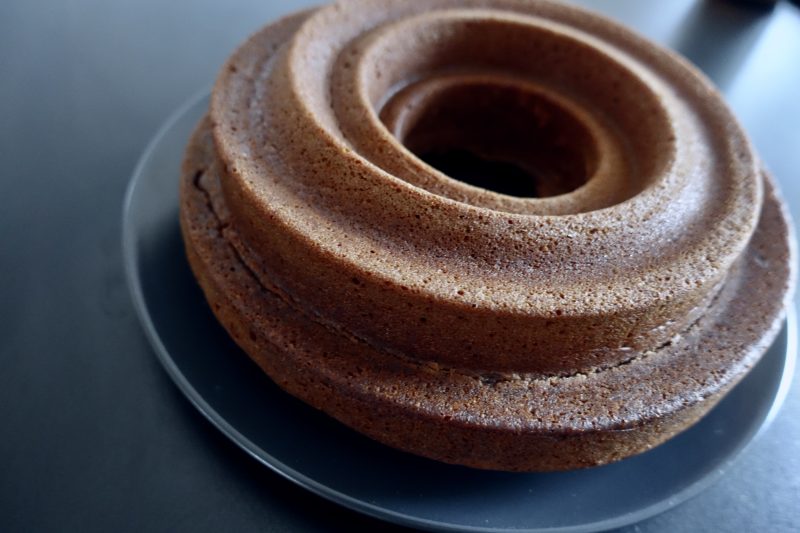 - そのまま予熱したオーブンへ入れ45〜50分焼きます。ケーキの中心に刺したつまようじに、何もついてこなければ焼き上がりです。15分ほど冷まし、型から外し、ワイヤーラックの上で完全に冷ましてください。